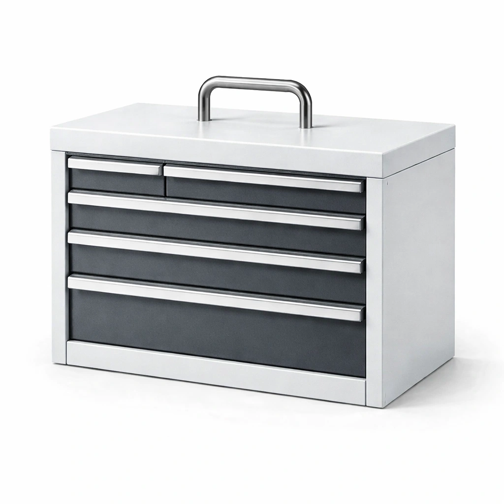 Cassetta degli attrezzi in acciaio inossidabile con cassetti grigi