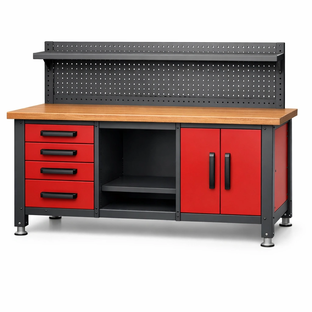 Componenti: Include 4 cassetti, 2 ante, 1 ripiano aperto e pannello forato posteriore.